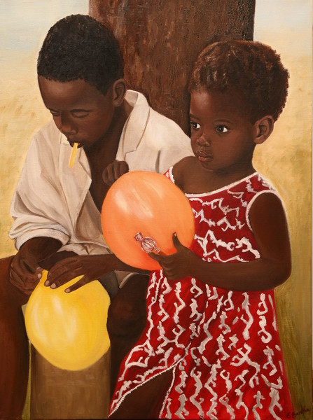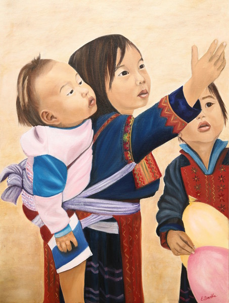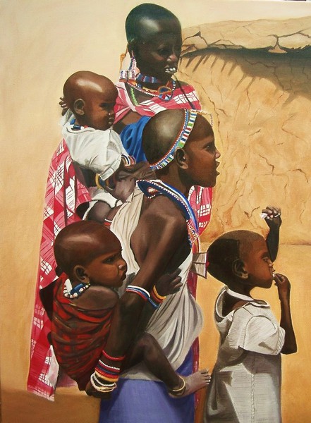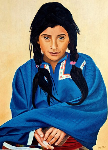 "Gesichter dieser Welt" - Öl auf Leinwand im Format 60 x 80 cm. Die Serie basiert auf Reiseeindrücken.